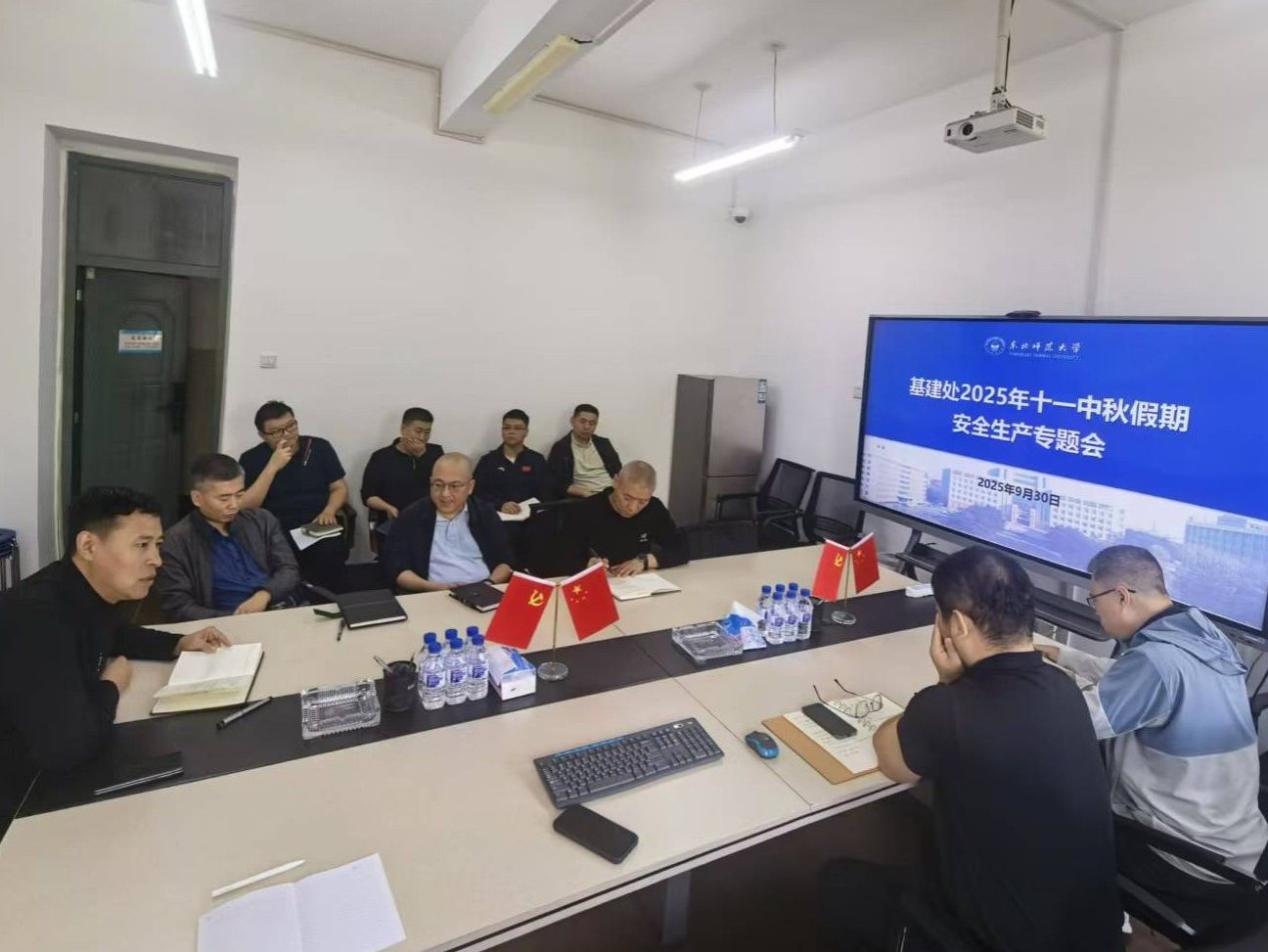 会议指出,十一中秋长假是加快推进工程进度的关键时段,基建处全体成员需切实提高思想认识,强化责任担当,在确保工程进度与施工质量的前提下,重点抓好生产安全、廉政安全、舆情安全三方面工作,保障假期期间施工现场与办公场所的安全稳定有序。