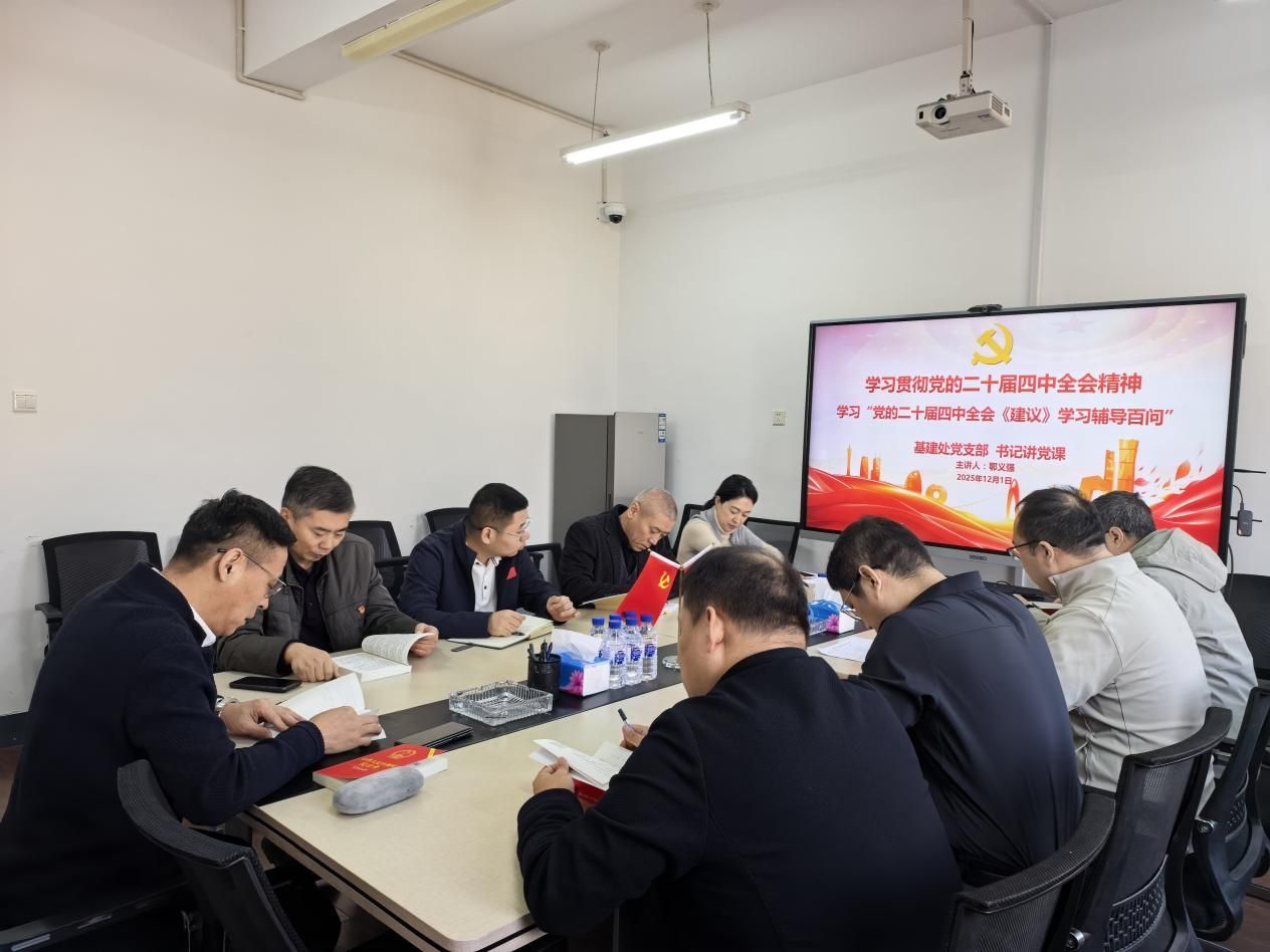 为深刻领悟党的二十届四中全会精神的实质与核心要义,全面、深入地学习贯彻党的二十届四中全会精神,在2025年12月1日,基建处党支部精心组织全体党员及入党积极分子开展了专题党课学习活动。党支部书记鄂义强以《党的二十届四中全会〈建议〉学习辅导百问》为核心内容,进行了系统且全面的讲解。